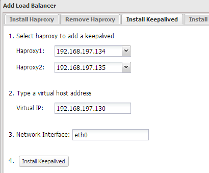 3. Install Keepalived and configure an appropriate virtual IP for HAproxy failover, similar to screenshot below: