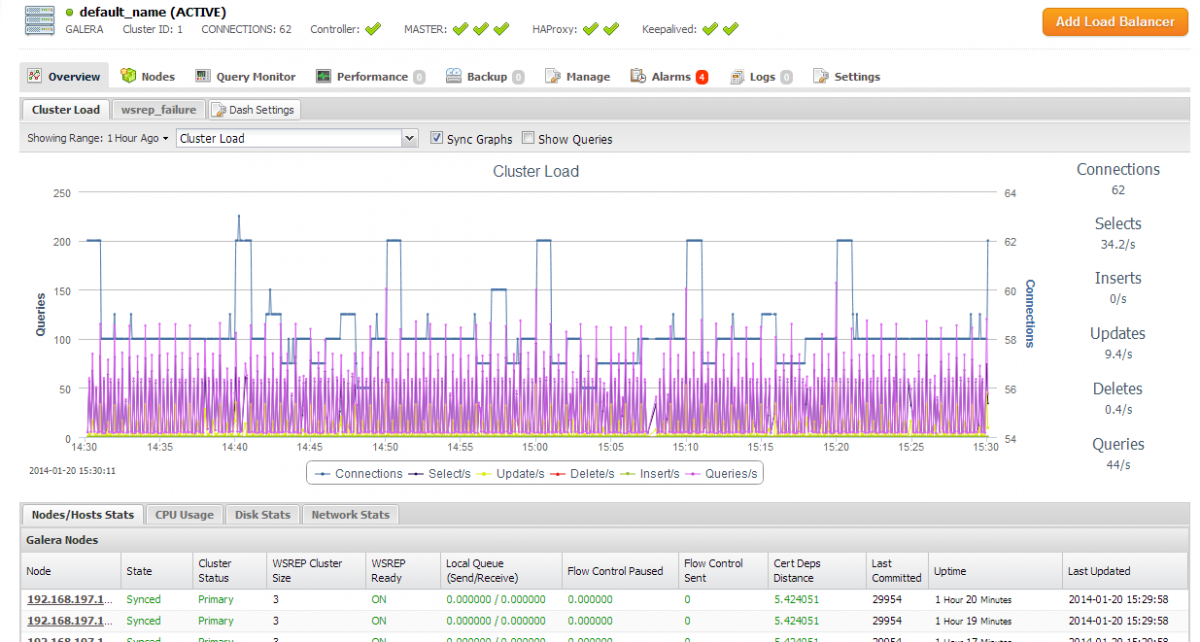 You should see some activity on your database cluster, as seen from the ClusterControl dashboard: