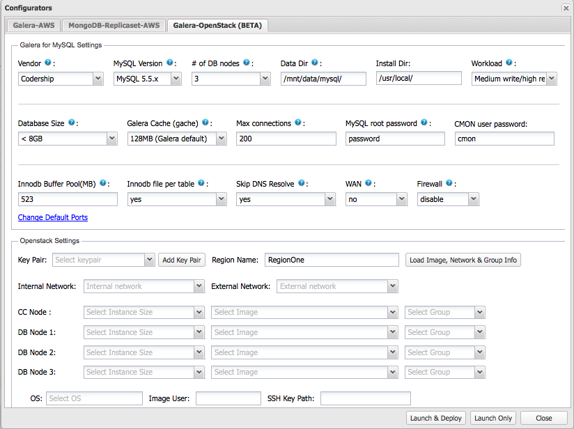 OpenStack: Galera Deployment Automation: You can now use the built-in Configurator for Galera to deploy Galera Cluster for MySQL (or Percona XtraDB Cluster or MariaDB Galera Cluster) on your OpenStack cloud. ClusterControl uses your OpenStack credentials to spin instances before deploying the selected software.