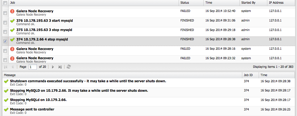 Audit Logging – Administrator Activity Tracking: Audit trails might be required in an organization for compliance reasons, and ClusterControl now maintains a record of actions performed by ClusterControl users. Any action performed by a user is logged in the Job log, and it is now possible to see who performed the action, what that action actually entailed and from which IP the action originated.
