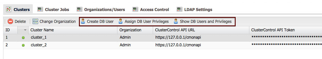 Cluster-wide MySQL User Management: This allows the Administrator to easily create the same MySQL users across multiple clusters, and manage their privileges all at once.