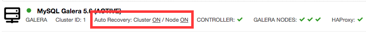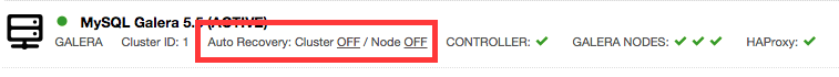 4. Turn off ClusterControl auto recovery from the UI, similar to screenshot below: