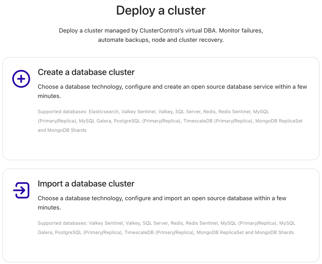 Once imported, ClusterControl provides automated monitoring, performance tuning, scaling, and failover — without manual edits to configuration files.